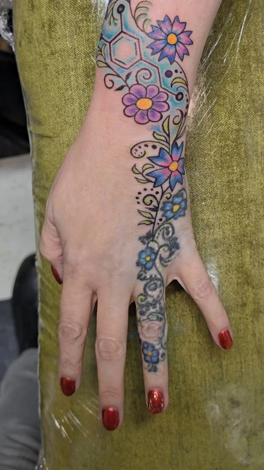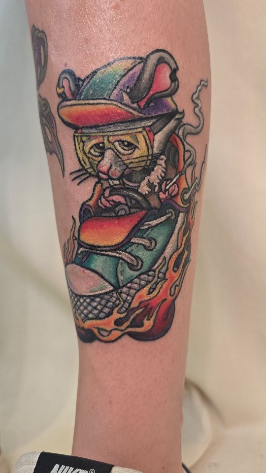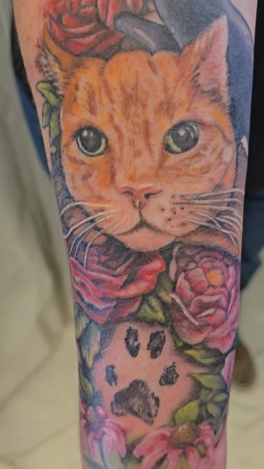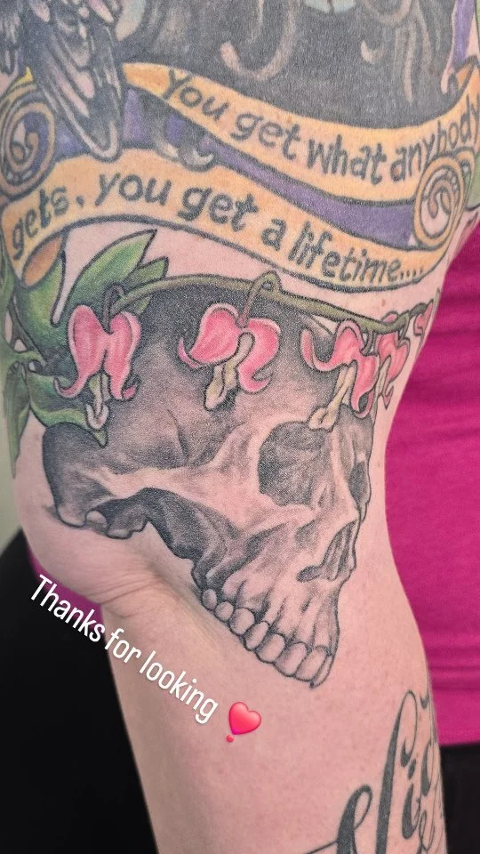 Now located in the Cleveland, OH area, she is currently employed as a tattoo artist at Stranci Tattoo & Piercing Co. She completed her apprenticeship at Stranci in May 2025 and is focusing on black and gray realism and large custom color pieces.